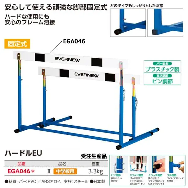 EGA046カテゴリ陸上商品名ハードルEU-2商品番号EGA046dummyEGA046ハードルEU-2タイプ:EGA046JANコード:4934048984564取扱い区分:取り寄せ品販売価格11,110円(税込)送料条件基本送料+別途加算の場合有お問い合わせ納期 在庫状況 見積り発注数量 カゴに入れる マイページへ登録 商品 問い合わせ エバニュー ハードルEU-2 EGA046●中学校用脚部:固定●バー材質:プラスチック(塩ビ/ABSアロイ)●支柱:スチール丸パイプ 高さ調節ピン自重:3.3kg●日本製