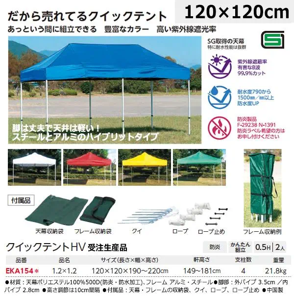 ・材質:天幕ポリエステル100%500D(防炎・防水加工)、フレーム アルミ・スチール