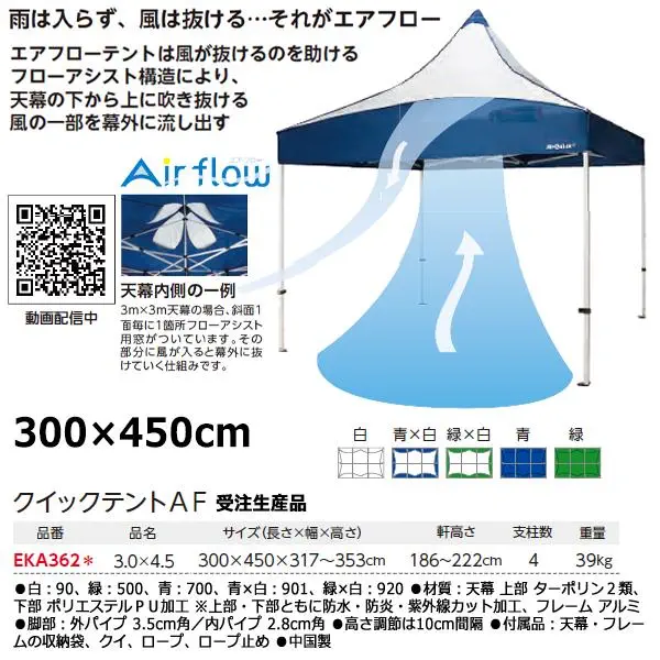 ・材質:天幕 上部 ターポリン2類、下部 ポリエステルPU加工