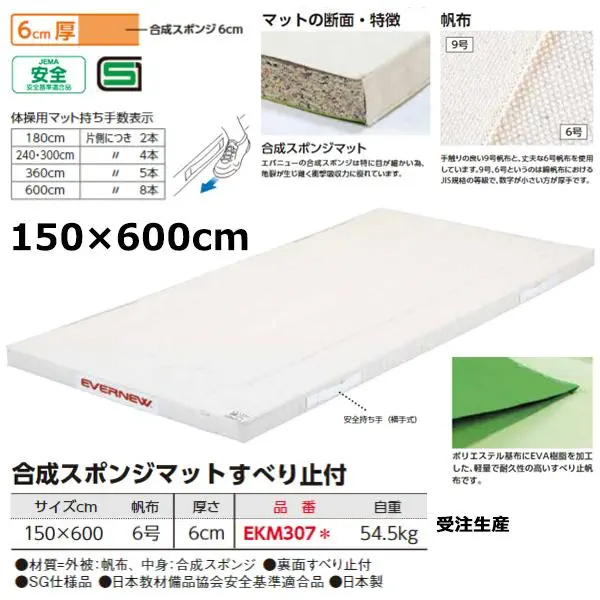 サイズ=長さ600cm×幅150cm×厚さ6cm