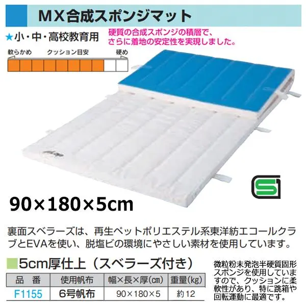 微粒粉末発泡半硬質固形スポンジを使用していますので、クッションに柔軟性があり、特に跳箱や回転運動に最適です。