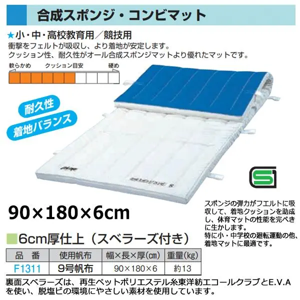- <2025NP>合成スポンジ・コンビマット 9号帆布 90×180×6cm 大型品