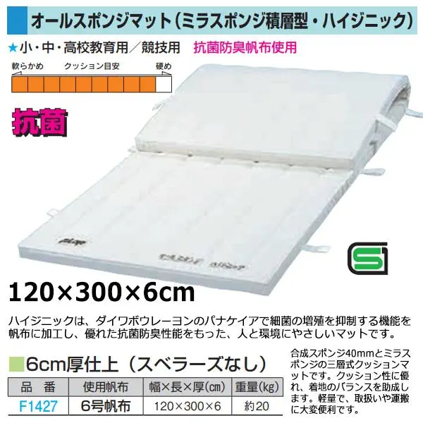 - <2024NP>オールスポンジマット(ミラスポンジ積層型・ハイジニック)6号帆布 120×300×6cm 大型品