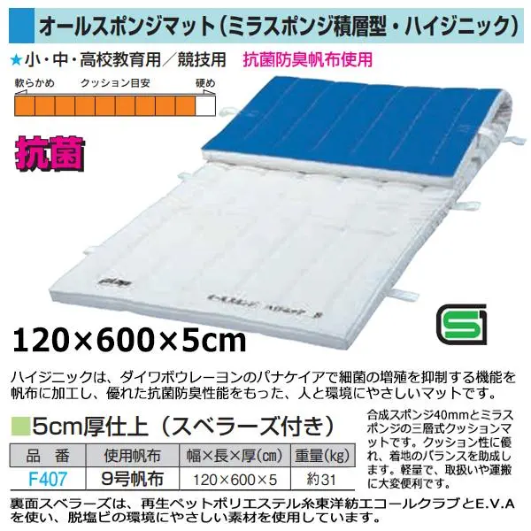 - <2025NP>オールスポンジマット(ミラスポンジ積層型・ハイジニック)9号帆布 120×600×5cm 大型品