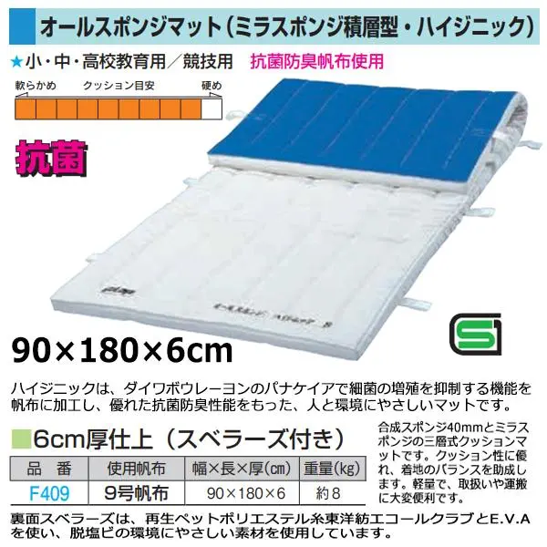 - <2025NP>オールスポンジマット(ミラスポンジ積層型・ハイジニック)9号帆布 90×180×6cm 大型品