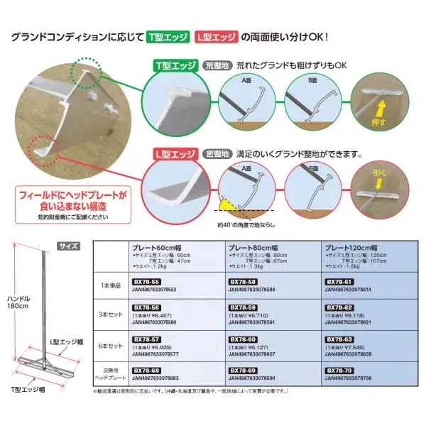 BX78-63ユニックス 野球 商品名<2023NP>アルミ合金製レーキ プレート120cm幅 6本セット商品番号BX78-63dummyBX78-63アルミ合金製レーキ プレート120cm幅 6本セットJANコード:4967633078638取扱い区分:取り寄せ品販売価格59,400円(税込)送料条件基本送料+別途加算の場合有在庫状況:在庫あり(在庫更新:Sat Nov 8 11:02:53 2025)店舗0問屋0メーカー5 ※ユニックス製品の在庫情報に関しては正確性に欠く場合いがあります。 品切れの場合でもお気軽にお問い合わせ下さい。 発注数量 カゴに入れる マイページへ登録 商品 問い合わせ ●サイズ:L型エッジ幅:120cmT型エッジ幅:107cm●ウエイト:1.5kg