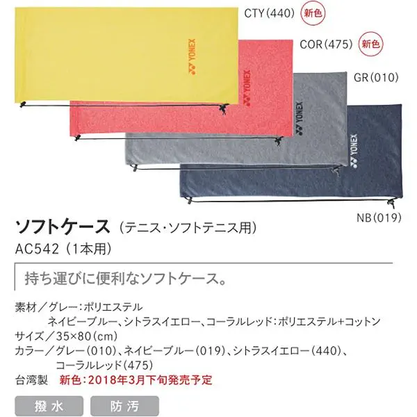 010:グレーヨネックス テニス・ソフトテニス 商品名<2024NP2>ソフトケース(テニスラケット用)商品番号AC542カラー(010) グレーカラーバリエーション010:グレー dummyAC542ソフトケース(テニスラケット用)カラー:(010) グレーJANコード:4549317844441受注単位:1本取扱い区分:取り寄せ品販売価格2,200円(税込)在庫状況(在庫更新:Wed Nov 5 11:03:27 2025)店舗0本問屋0本メーカー0本品切れ入荷通知 マイページへ登録 商品 問い合わせ 持ち運びに便利なソフトケース。素材:(010:グレー)ポリエステル・その他のカラー・ポリエステル+コットンサイズ:35×80cm機能:撥水・防汚原産国:台湾製